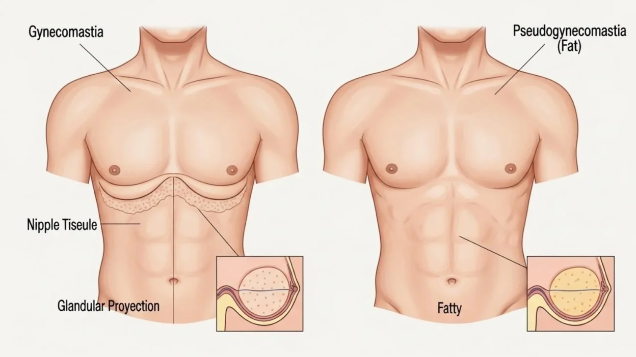 Many people search for “gynecomastia or fat” because both can make the chest look bigger in males. At first, they can look the same. That is why many people feel confused.