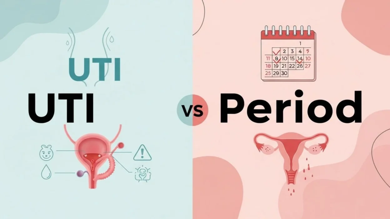 The phrase UTI or period is common because the signs can overlap at first. Both can cause pain in the lower belly. Both can make you feel tired and uncomfortable. That is why many people get confused. But there are still simple clues that can help. Burning when peeing, urgency, and frequent trips to the bathroom point more to a UTI. Bleeding, cramps, bloating, and cycle timing point more to a period.